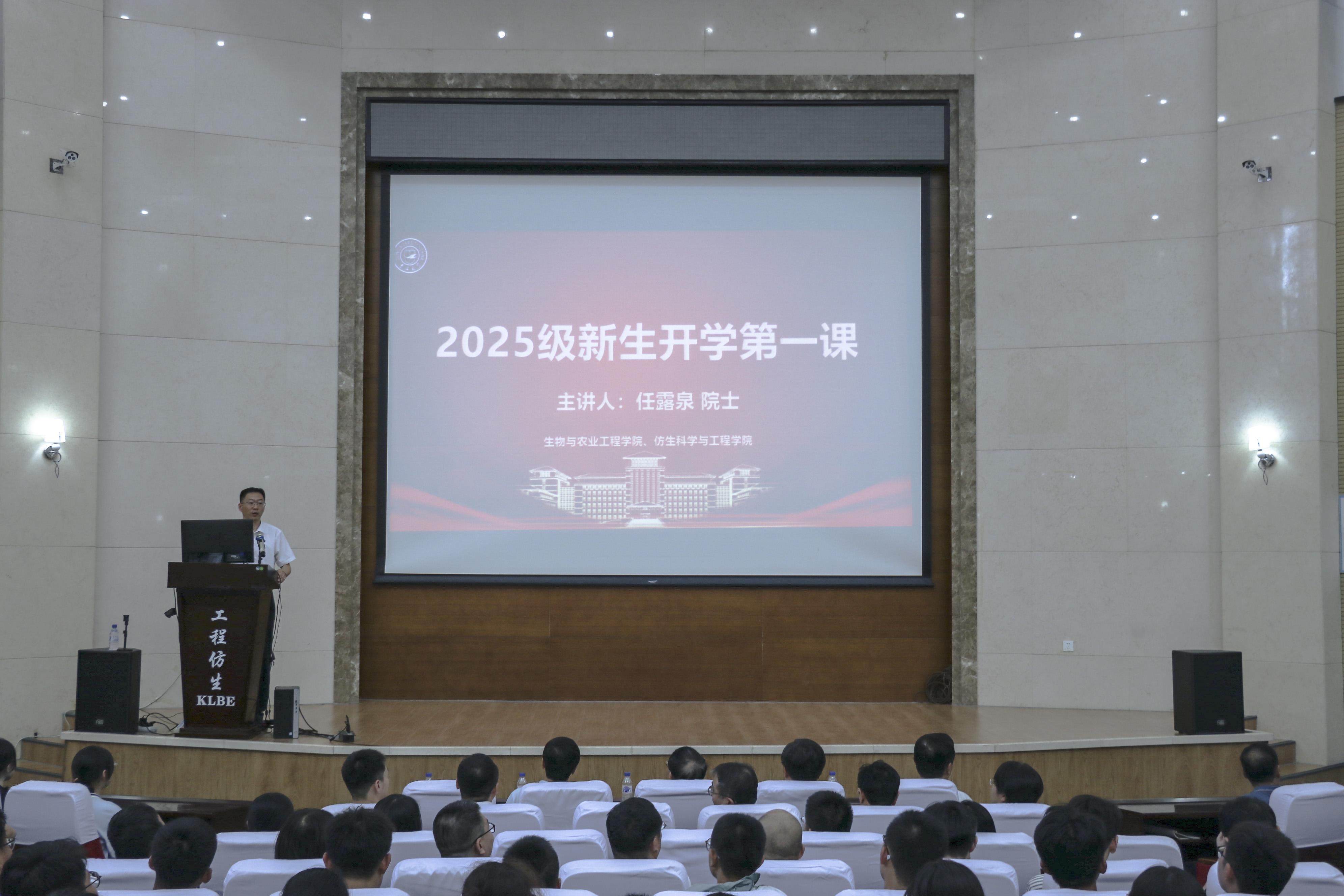 9月4日下午,beat365在线体育官网2025级新生“开学第一课”在南岭校区仿生报告厅举行。本次活动由学院党委书记杨民主持,中国科学院院士任露泉教授受邀为全体新生讲授题为《仿生学的实践与思考》的专题报告。学院相关领导、教师代表及2025级本硕博新生共同参加了此次活动,现场气氛庄重而热烈。