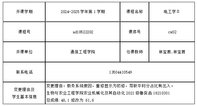 关于学院2021级鲁奕垚同学电工学Ⅱ课程成绩更正的公示