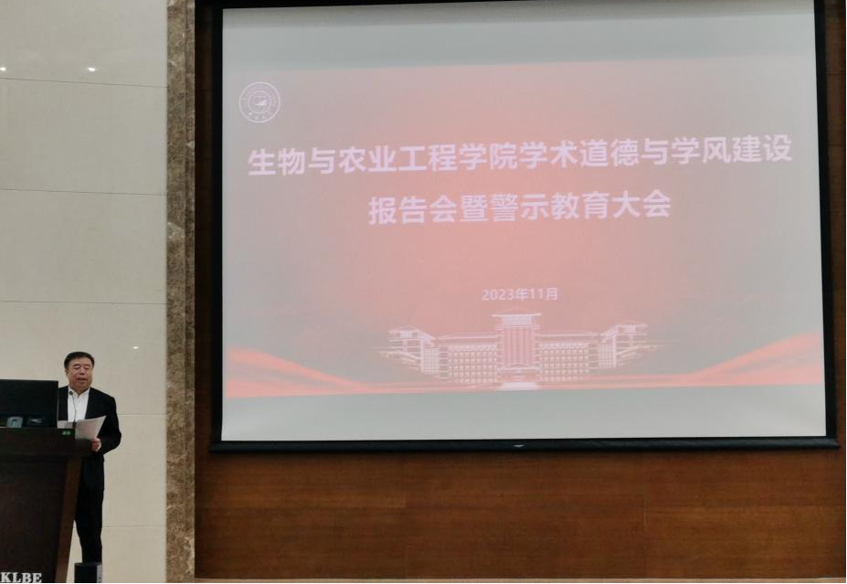 为深入贯彻习近平在党的二十大报告关于“教育、科技、人才”的重要论述,进一步加强科研诚信建设,营造健康学术氛围,根据学校学风建设总体规划和宣传教育工作有关要求。11月13日,beat365在线体育官网举办学术道德与学风建设报告会暨警示教育大会。会议邀请教育部重大人才项目特聘教授、生物与农业工程学院田丽梅教授作科研诚信报告,科研院科技管理办公室王大明副主任作警示教育报告,报告会由beat365在线体育官网党委书记杨宝泉书记主持,学院副院长张强、副院长张志辉等领导及学院教师、研究生等100余人参加了会议。