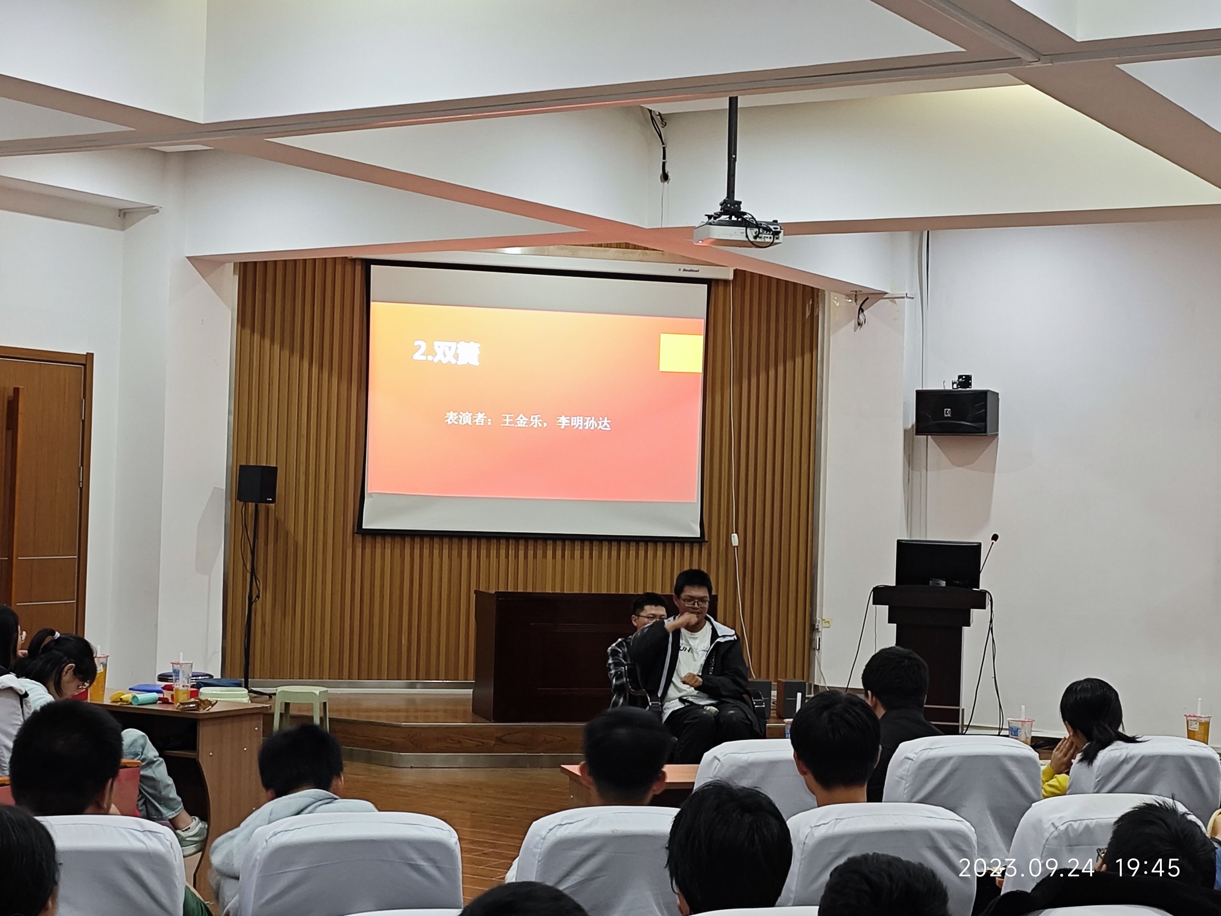 晚会伊始,任丽丽老师表达了对新同学热烈欢迎及殷切期盼。班主任们更是贴心地给同学们准备了月饼、各种小零食及饮料。节目歌曲串烧、二人双簧、相声及单人独唱《永不失联的爱》,向大家展现出了同学们昂扬向上的精神状态。节目中穿插了众多趣味小游戏,更是将现场气氛迅速推向高潮。最终,晚会在老师与同学们的掌声与欢笑声中完美落幕。本次茶话会的举办,不仅促进了新生对新的校园环境的了解与适应,更向新同学和外界展现了我校青春向上,热情开放的氛围。