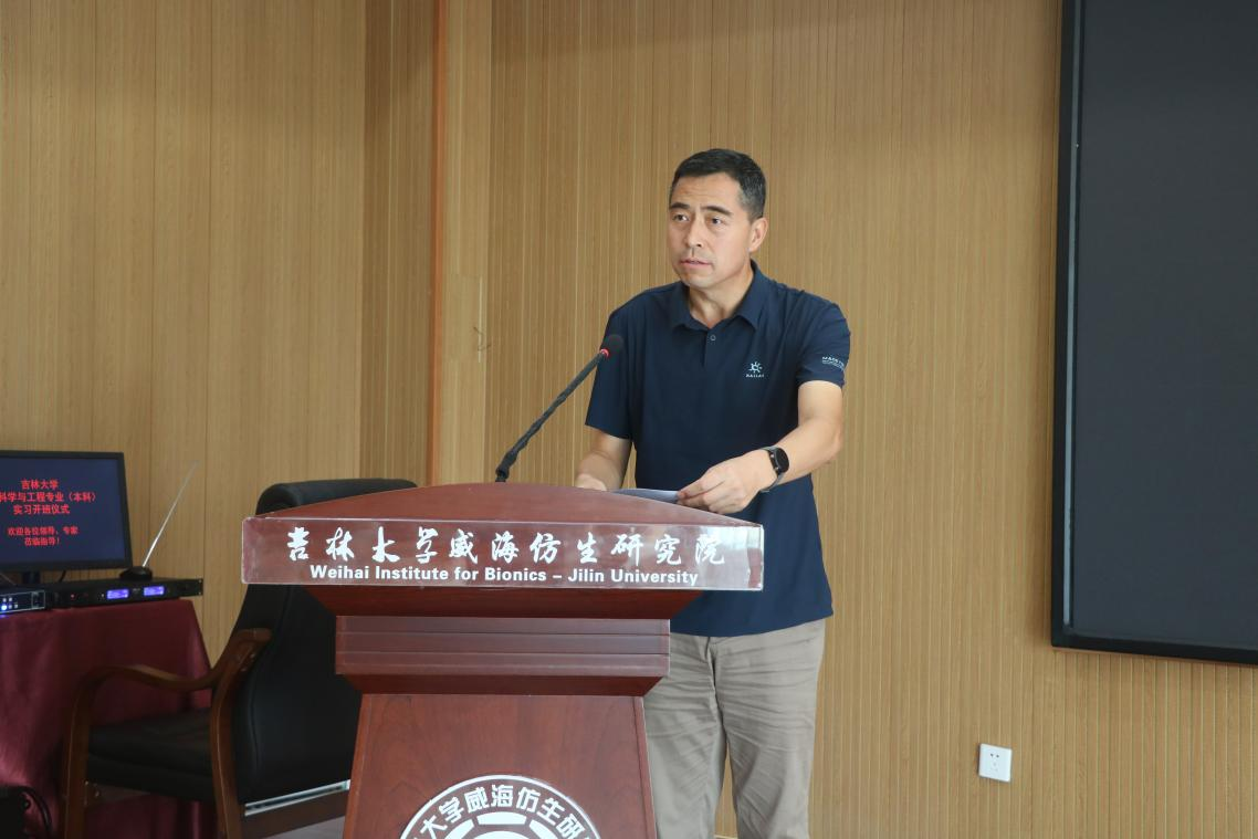 9月5日上午,生物与农业工程学院仿生科学与工程(本科)实习开班仪式在beat365在线体育官网威海仿生研究院三楼学术报告厅举行。生物与农业工程学院党委书记杨宝泉、仿生科学与工程系主任邹猛,威海仿生研究院执行院长丁刚、行政副院长吕子珍、副院长齐江涛,专业教师及58位2021级仿生科学与工程专业本科生参加开班仪式,仪式由学院副院长郭鸿鹏主持。