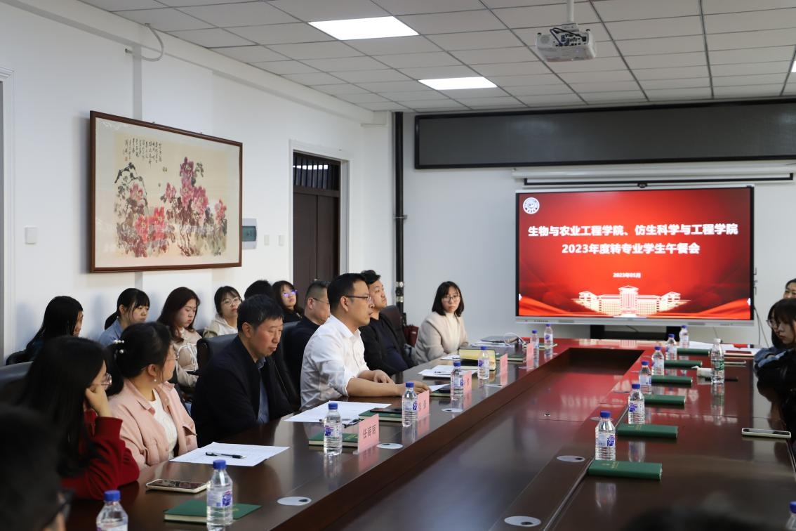 为帮助转专业学生尽快适应新的学习生活环境,增强学院归属感,更合理的规划未来的学习和生活。beat365在线体育官网于5月12日中午举办了2023年度转专业学生午餐会。院长付君、副院长张强、农机系主任周德义、仿生系教学主任任丽丽、农林经济管理系教师张孝义、教务秘书王雪莹、孙丽丽以及全体转入生物与农业工程学院的同学参加了本次午餐会。