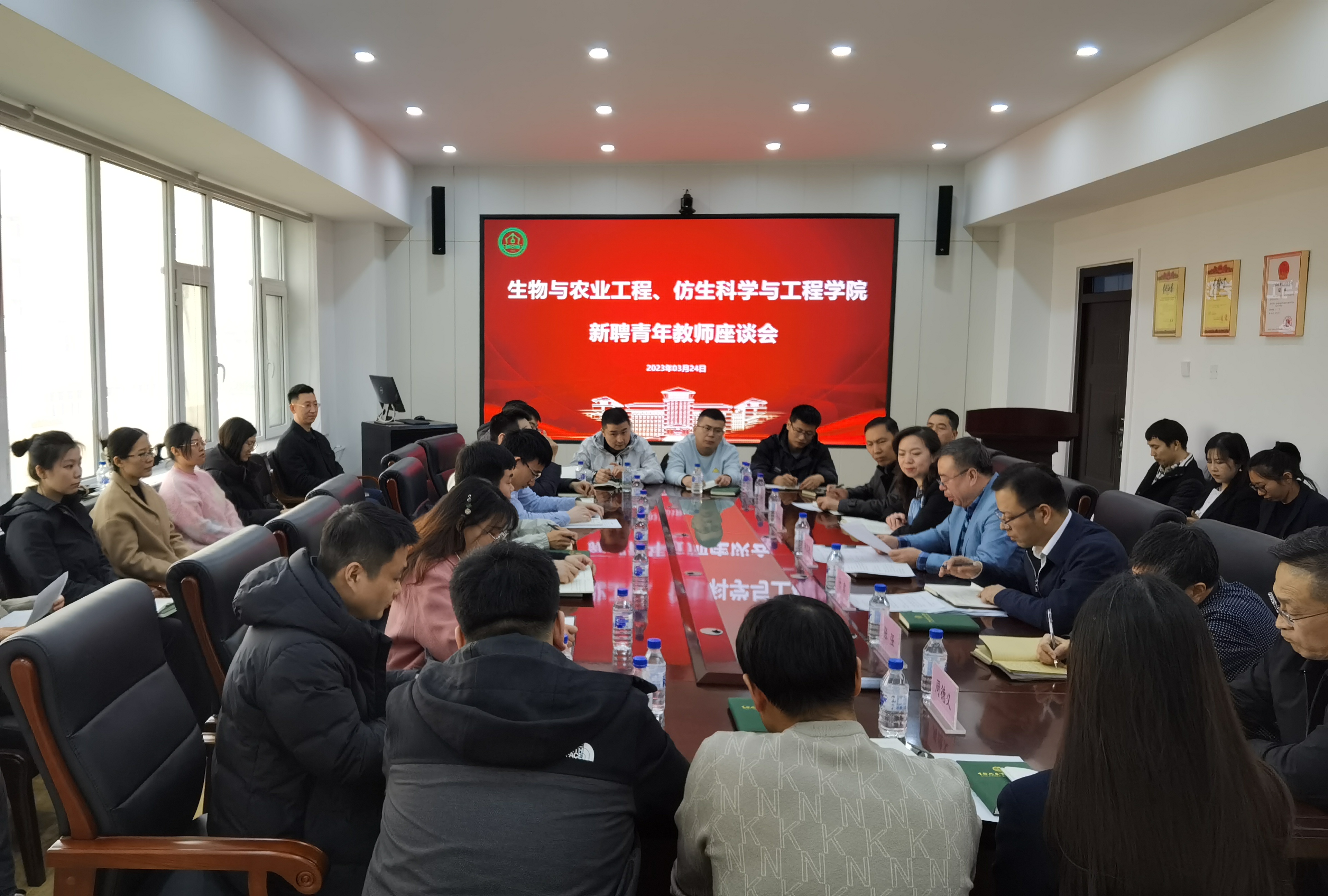 为推动“三大工程”建设,弘扬优良师德师风,夯实立德树人根基,生物与农业工程学院、仿生科学与工程学院于3月24日召开青年教师座谈会。学院党委书记杨宝泉、院长付君、副院长张强、副院长韩丽华、农业工程系主任周德义、农林经济管理系主任郭鸿鹏、机关代表及20名青年教师出席会议,会议由杨宝泉书记主持。
