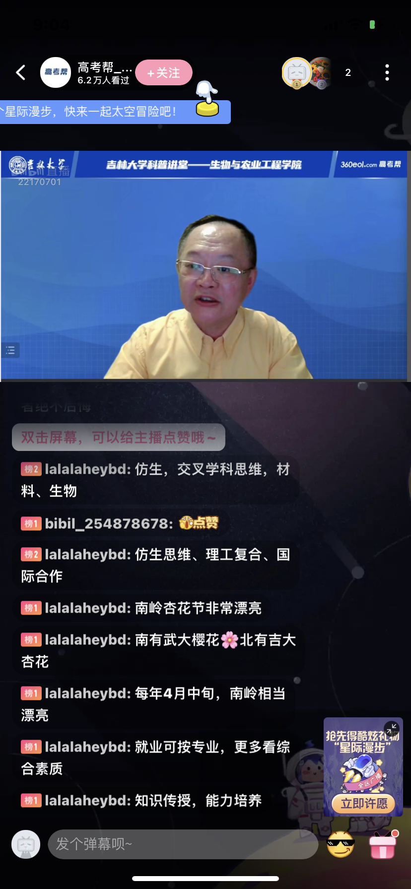 “院长直播讲专业,教授现场解疑惑”—生物与农业工程学院在线招生宣讲突破6.2万浏览量