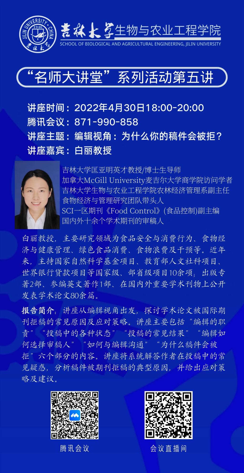 生物与农业工程学院“名师大讲堂”系列活动第五讲