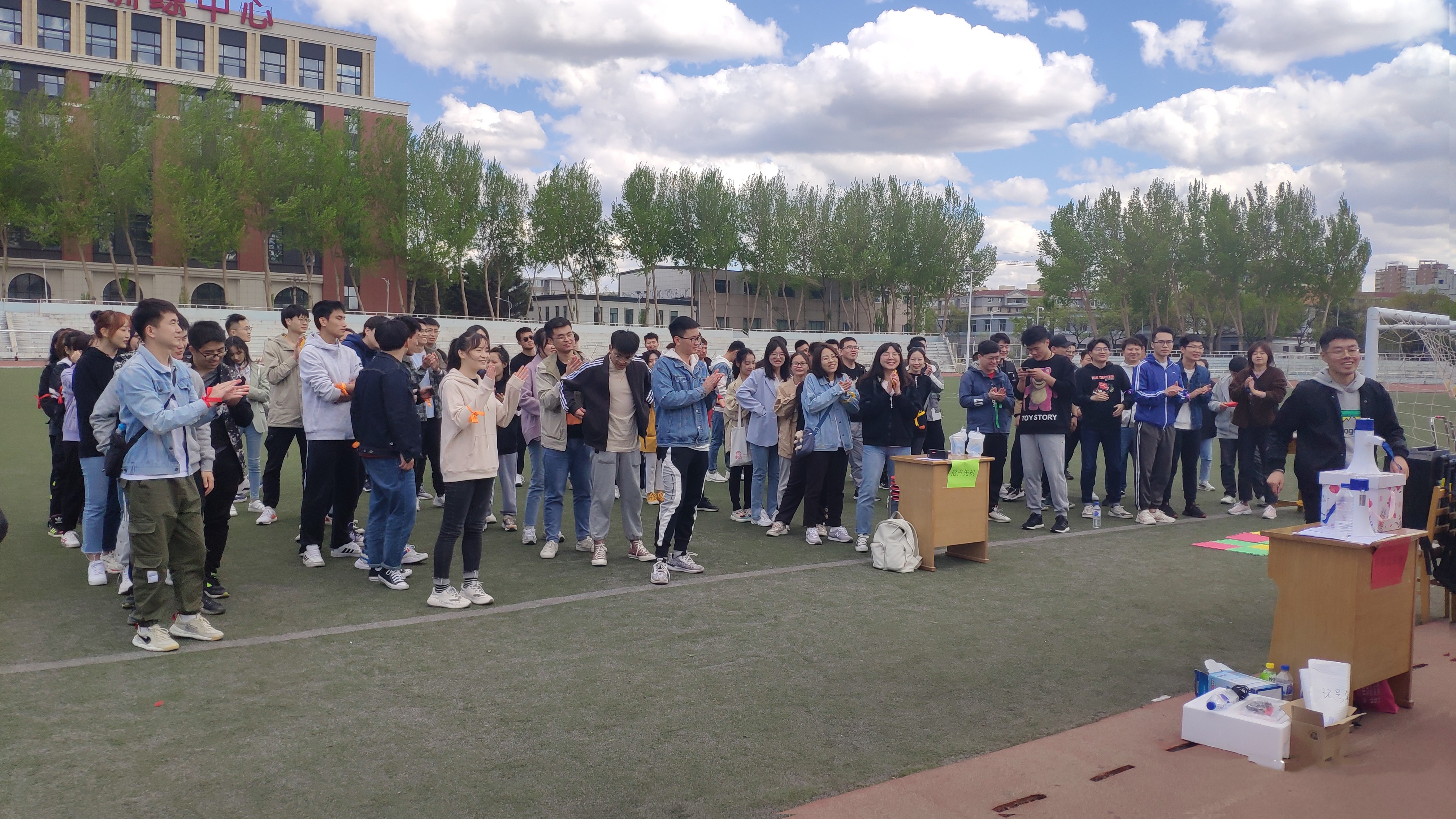 伴着午后的和风,在全体学生干部紧锣密鼓地筹备后,同学们陆续到场、气氛火热。本届趣味运动会共组成八支队伍、百余人参加。随着第一项神秘大奖的隆重揭晓,趣味运动会正式拉开帷幕。