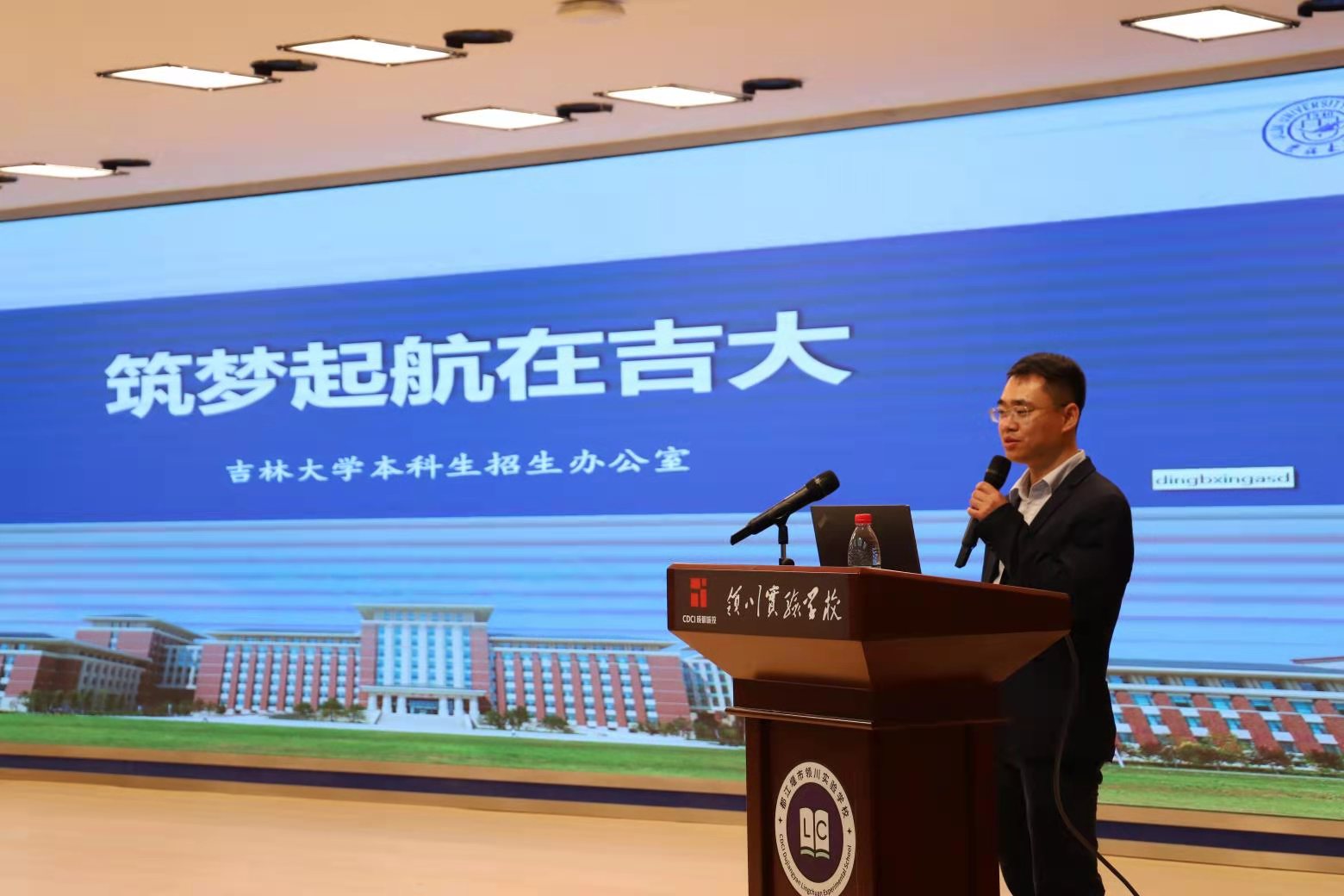 4月9日,杨书记一行应邀到都江堰市领川实验学校进行交流和招生宣传。都江堰市领川实验学校是由成都城投集团投资创办的一所涵盖小学、初中和高中的一贯制综合学校,师资力量雄厚,发展潜力巨大。领川实验学校蒋增友校长对杨书记一行表示热烈欢迎和衷心感谢,希望同beat365在线体育官网进一步加深交流合作。杨书记简要介绍了beat365在线体育官网的基本情况,鼓励领川实验学校的师生努力工作和学习,为学校的快速发展做出贡献。王刚副教授、李大伟副教授分别为领川实验学校的师生共200多人开展了智慧农业专题学术报告和beat365在线体育官网招生录取政策解读,加深了与会师生对吉大的认识,引起了高中生励志报考beat365在线体育官网的兴趣和积极性。