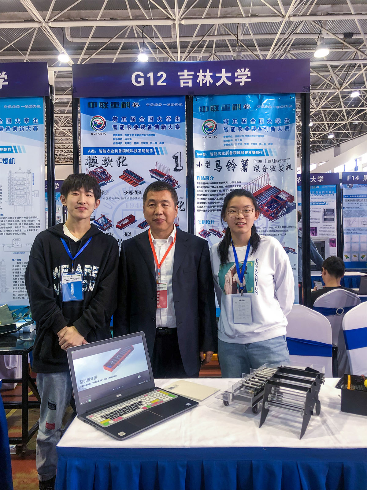 2019年11月22日-24日,“中联重科”杯第五届全国大学生智能农业装备创新大赛决赛在安徽农业大学举行。经过激烈角逐,生物与农业工程学院两支队伍表现出色。刘炫廷、管桐、田一童、王瑞琪、高慧5名同学的作品“小型马铃薯联合收获机”获A类项目特等奖,刘炫廷、李慧莱、薛宏伟、卢智良4名同学的作品“果园环状清耕除草机”获C类项目一等奖,马云海教授作为两个项目的指导教师,获“优秀指导教师”荣誉称号。在路演过程中,两组作品得到了陈学庚院士、康绍忠院士的关注和指导。