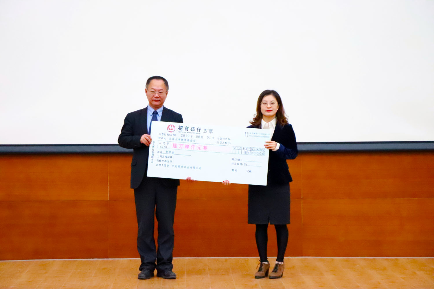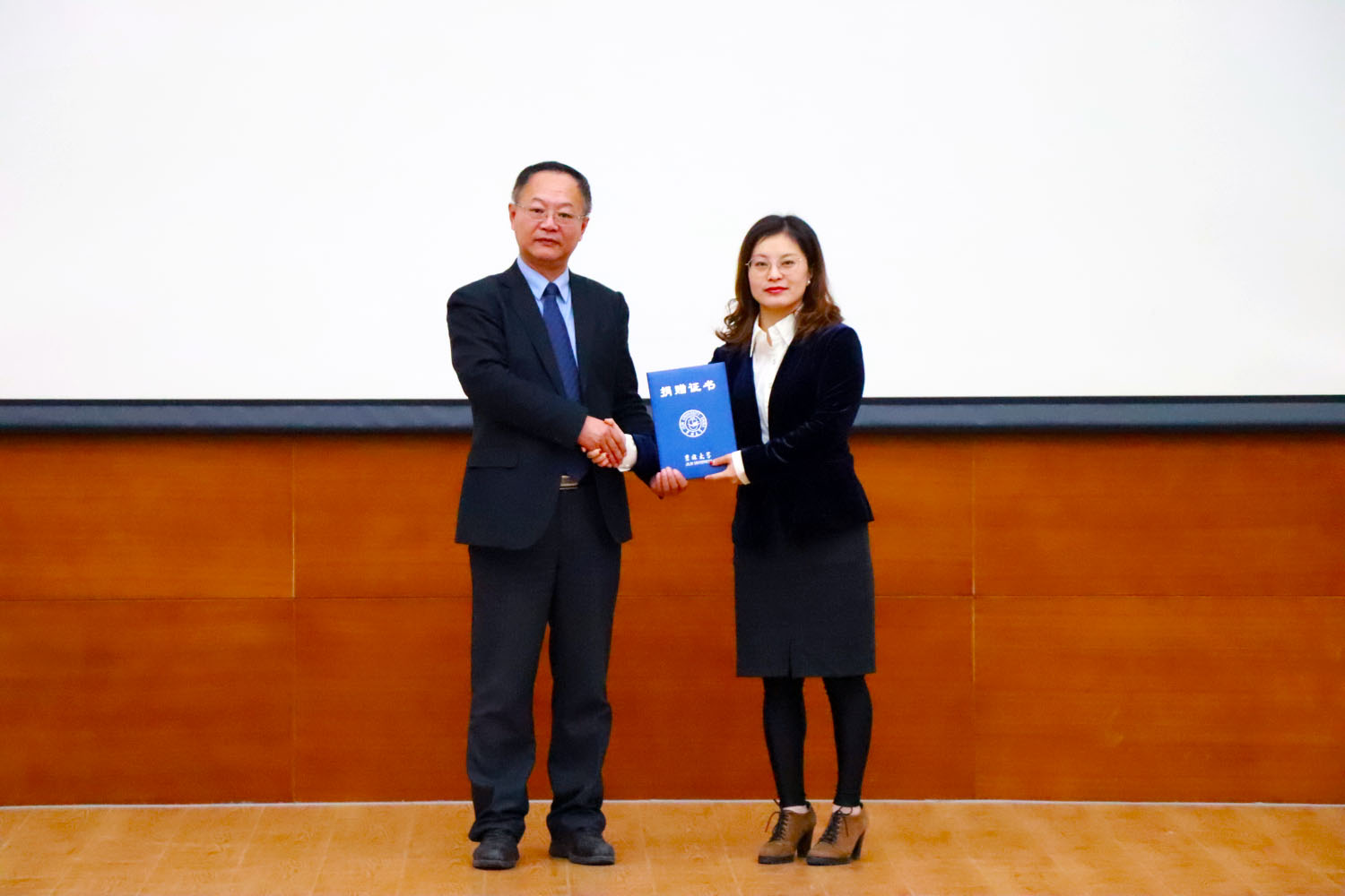 接下来,中化集团农业事业部人力资源部总经理助理王敏女士向学院捐赠,于海业院长代表学院向中化农业事业部颁发了捐赠证书。吕游副书记宣读了2017-2018年度中化农业奖学金获奖名单。中化化肥吉林分公司副总经理阮百肇、中化化肥东北工贸大区总经理助理李剑宵为16名同学颁发了获奖证书。