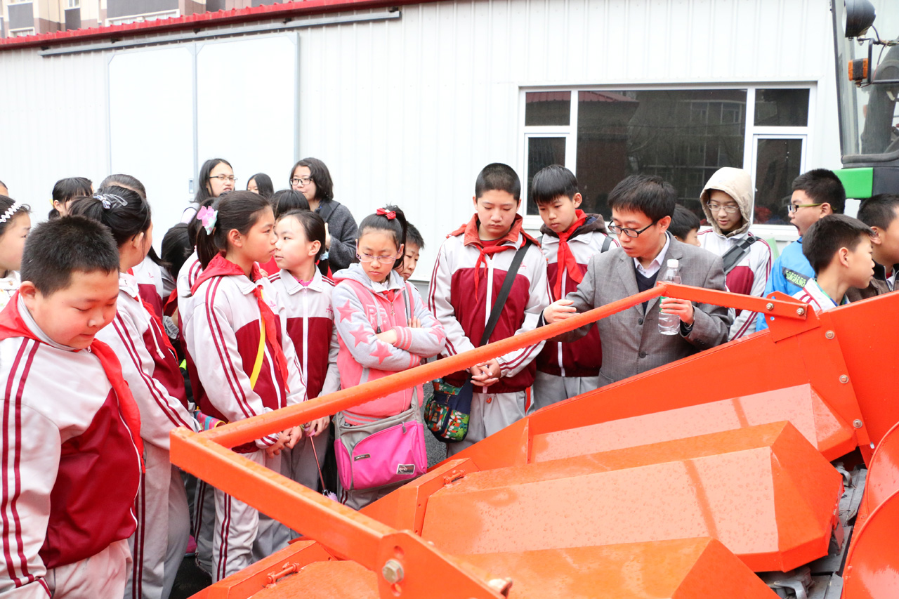 上午十点,工作人员和志愿者带领孩子们来到南岭校区的农机实验室参观,实验室内梁老师向同学们耐心详细地介绍实验室的各种实验器材以及工作原理,拖拉机的各个部件及功能,满足了小同学们的好奇之心。