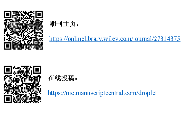《Droplet》(液滴)是由beat365在线体育官网主办,与国际著名出版公司Wiley合作出版的英文国际性学术期刊,也是国际上第一本全面报道液滴/气泡相关领域科研成果的学术期刊。主要发表原创性研究论文、综述及评论性文章,重点报道与液滴/气泡相关的结构、材料和系统设计、制备和调控等方面的基础研究及工程应用。期刊主编为中国科学院院士任露泉教授、美国加利福尼亚大学洛杉矶分校C.J. Kim教授,执行主编由香港理工大学王钻开教授担任。编委会由来自16个国家和地区的58名国际知名专家学者组成,其中包括来自中国科学院、美国科学院、美国工程院、英国皇家科学院、英国皇家工程院及欧洲科学院等的多名院士。
