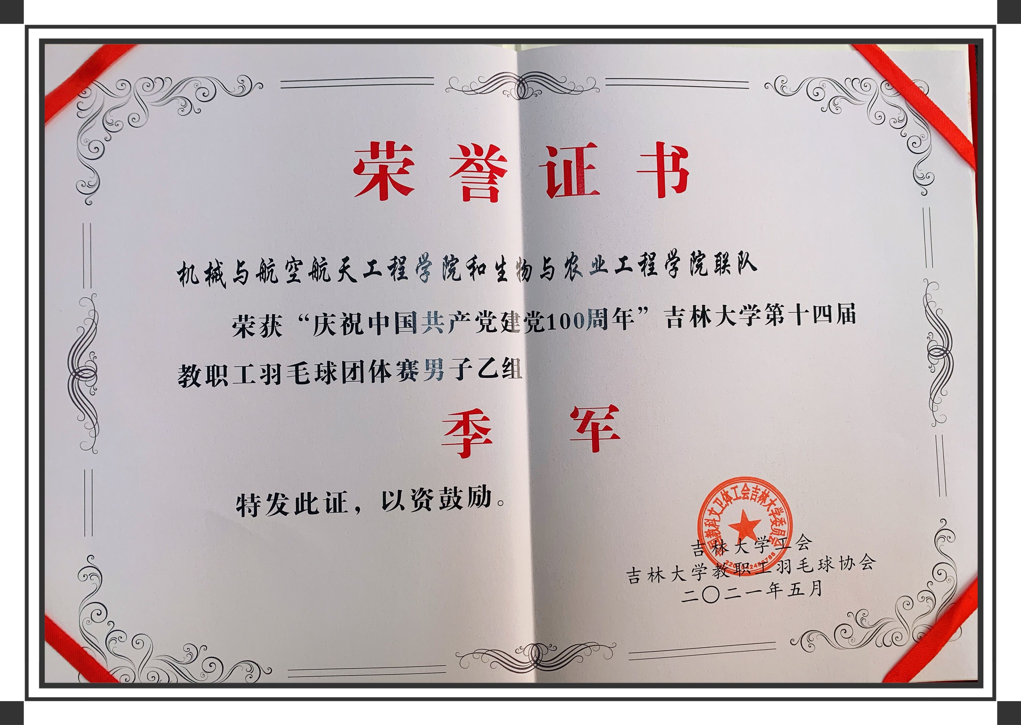 在刚刚结束的“庆祝中国共产党建党100周年”beat365在线体育官网第14届教职工羽毛球团体男子乙组比赛上,号称史上最长队名的“机械与航空航天工程学院和生物与农业工程学院联队”以小组第一身份出线后,力克哲学社会学院、物理学院乙男二队,不敌“图书馆与行政联队”,取得了男子乙队并列第3名的历史最好成绩,首次升入甲组。热烈祝贺黄东岩、袁洪方、赵久君三位老师取得佳绩,为生物与农业工程学院争光添彩!