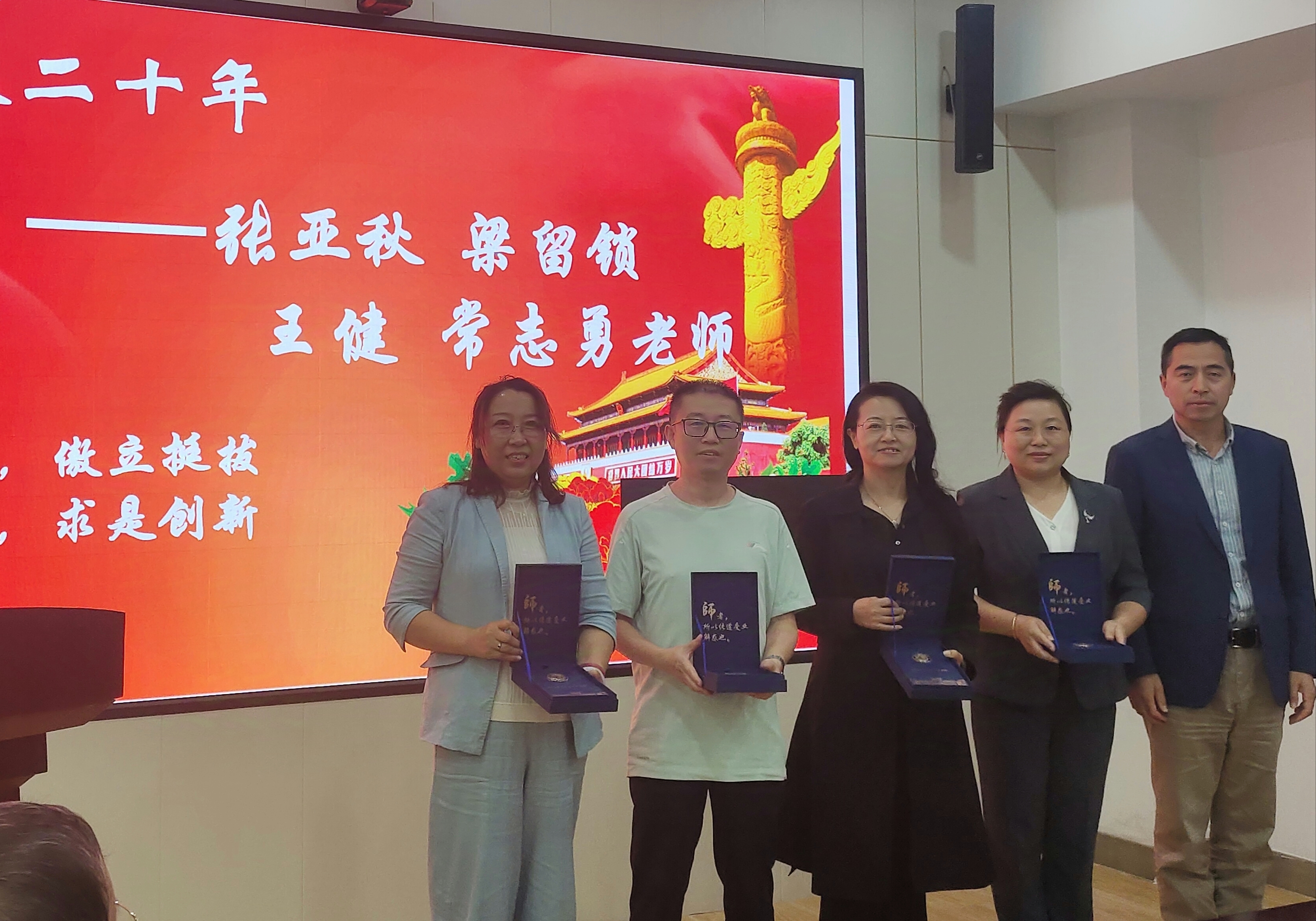 于建群老师、邱桂杰老师、张亚秋老师、牛世超老师及商震老师分别代表从教不同时间段的教师进行了发言,从教40年的于建群老师感慨40年即是自己的从教时间,同时今年也是第40个教师节,感觉深受鼓舞,看着会上的中青年教师和新入职的教师,有的是自己教过的学生,看着他们一步步成长起来,感受到做老师的幸福与欣慰。与会老师们相继进行了分享。