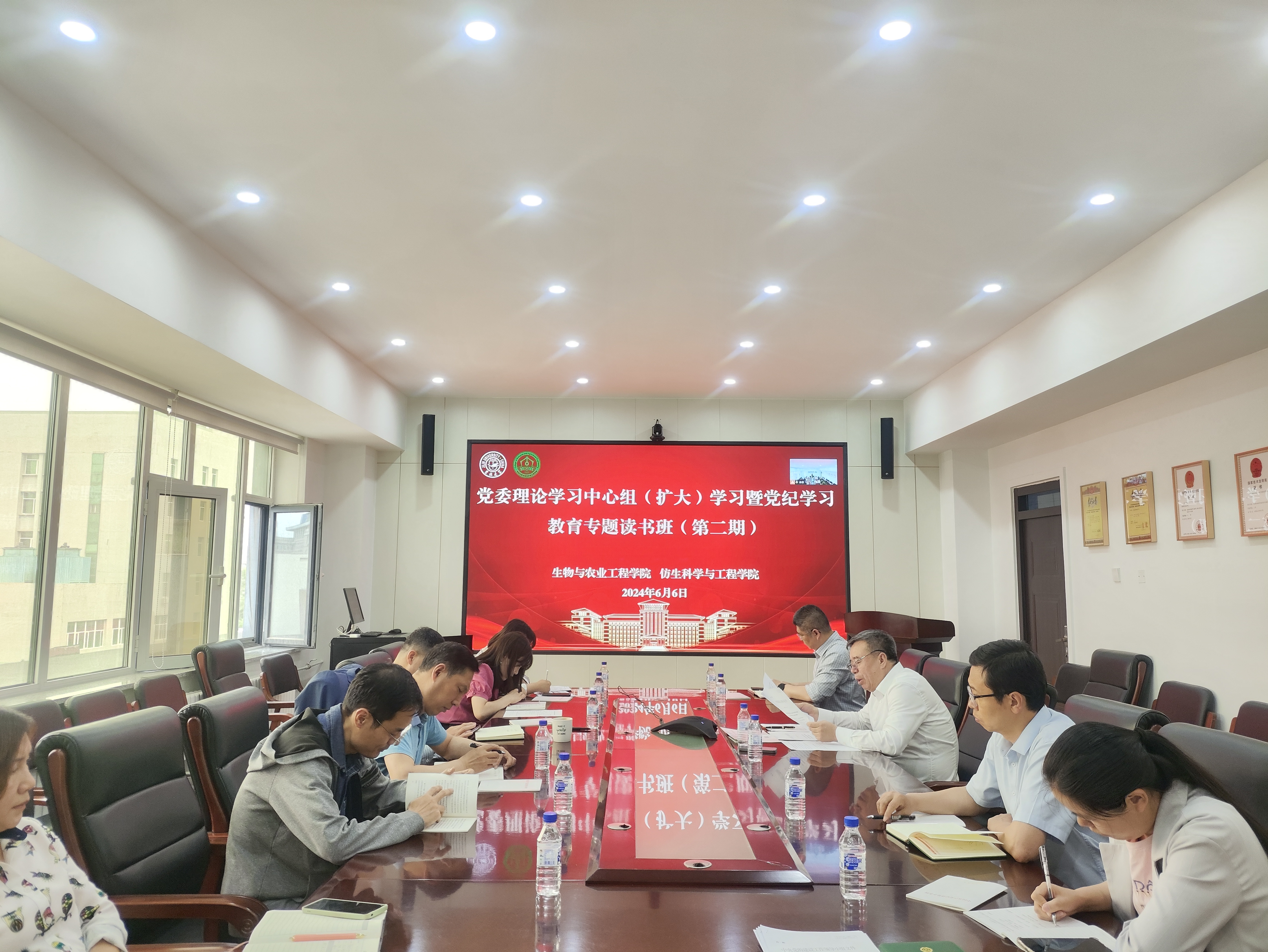 为深入学习贯彻习近平总书记关于党纪学习教育的重要讲话和重要指示精神,扎实开展学院党纪学习教育工作,6月6日下午,学院在农机交通楼410会议室组织召开党委理论学习中心组(扩大)学习暨党纪学习教育专题读书班(第二期)。学院领导班子成员、党委委员、纪委委员、党支部书记、支部委员参加会议。会议由党委书记杨宝泉主持。