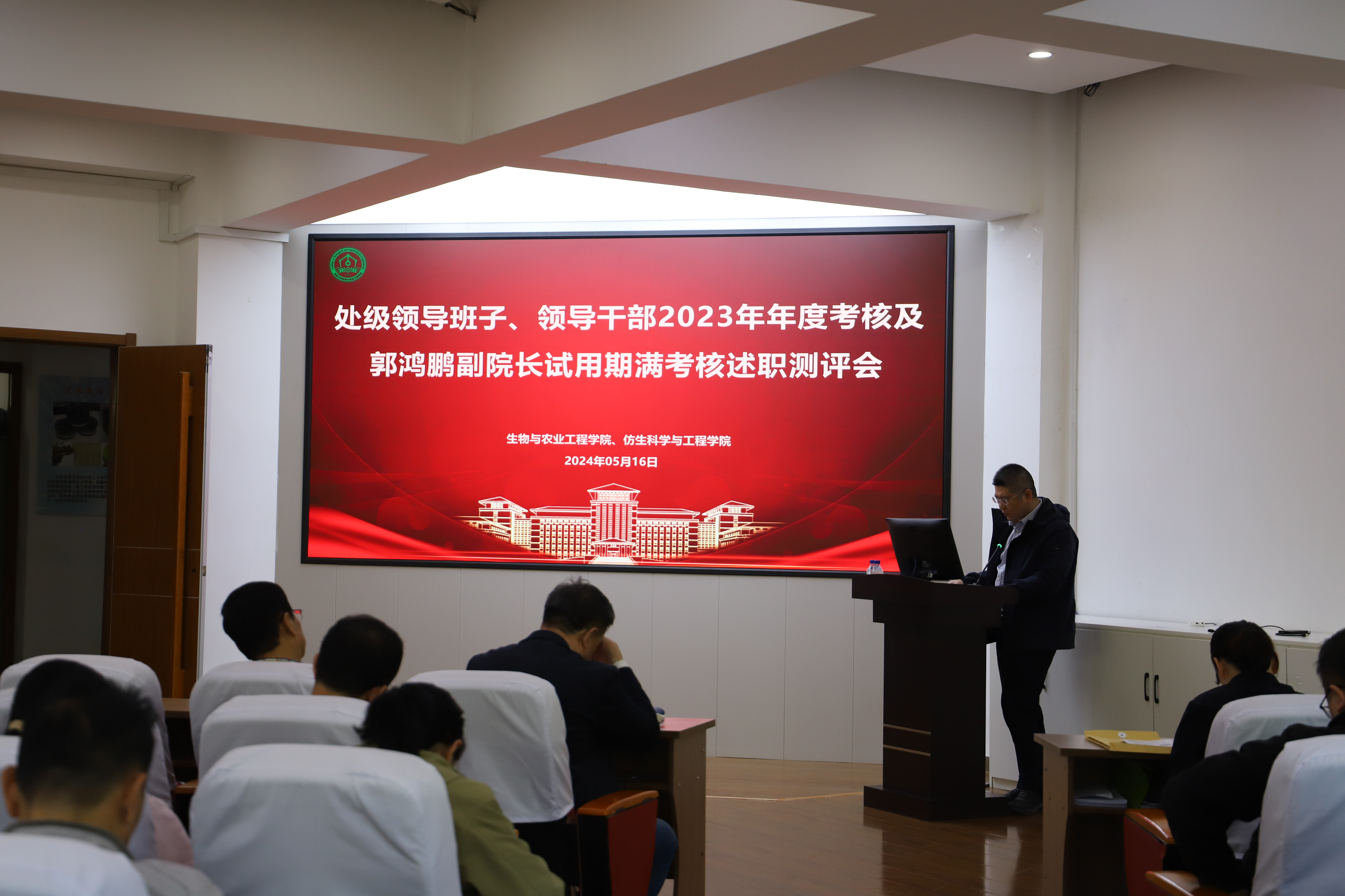 根据《beat365在线体育官网处级领导班子和领导干部年度考核工作办法》和学校党委的工作安排,5月16日下午,在南岭校区仿生楼209召开学院处级领导班子、领导干部2023年年度考核述职测评会及郭鸿鹏副院长试用期满考核工作会。学院全体教职工参加会议,学校党建工作联络员刘炳恩同志列席指导,会议由学院党委书记杨宝泉主持。