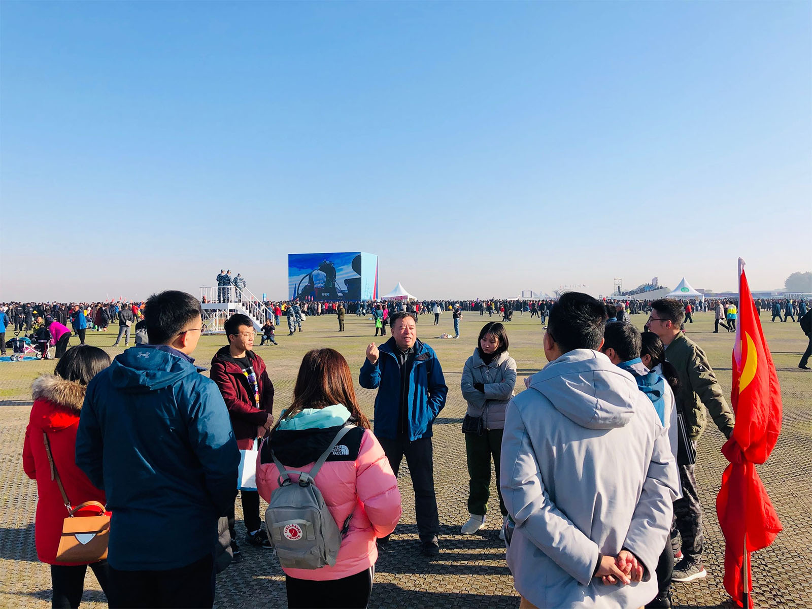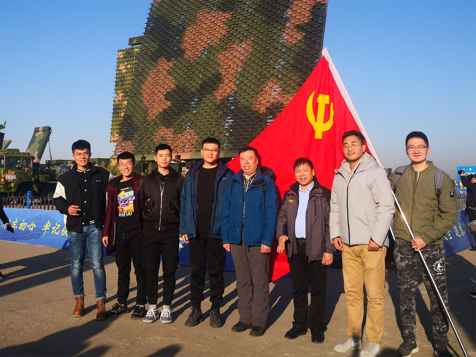 参加活动的师生们一大早便赶到了现场。在活动正式开始前,杨书记先给大家带来了一场别开生面的现场党课。杨书记首先介绍了“中国人民解放军”称谓的由来,讲解了在现代化战争中空军存在的非凡意义,并带大家一同回忆了中华人民共和国空军的发展史。随后,杨书记又为大家系统讲解了中国近现代史、战争史、党史的历程与紧密联系。从“辛”酸之至、“丑”陋至极的“辛丑”条约的签订,到中华民族的站起来、富起来、强起来的发展历程;从积贫积弱的满清王朝末期,到中华民国的民主、宪政尝试,再到新中国的成立与建设……历史已经证明,只有中国共产党才能救中国。杨书记的现场党课让大家由认识空军开始,从新的角度了解了我党我军的发展历史,进一步加深了对党的认识。