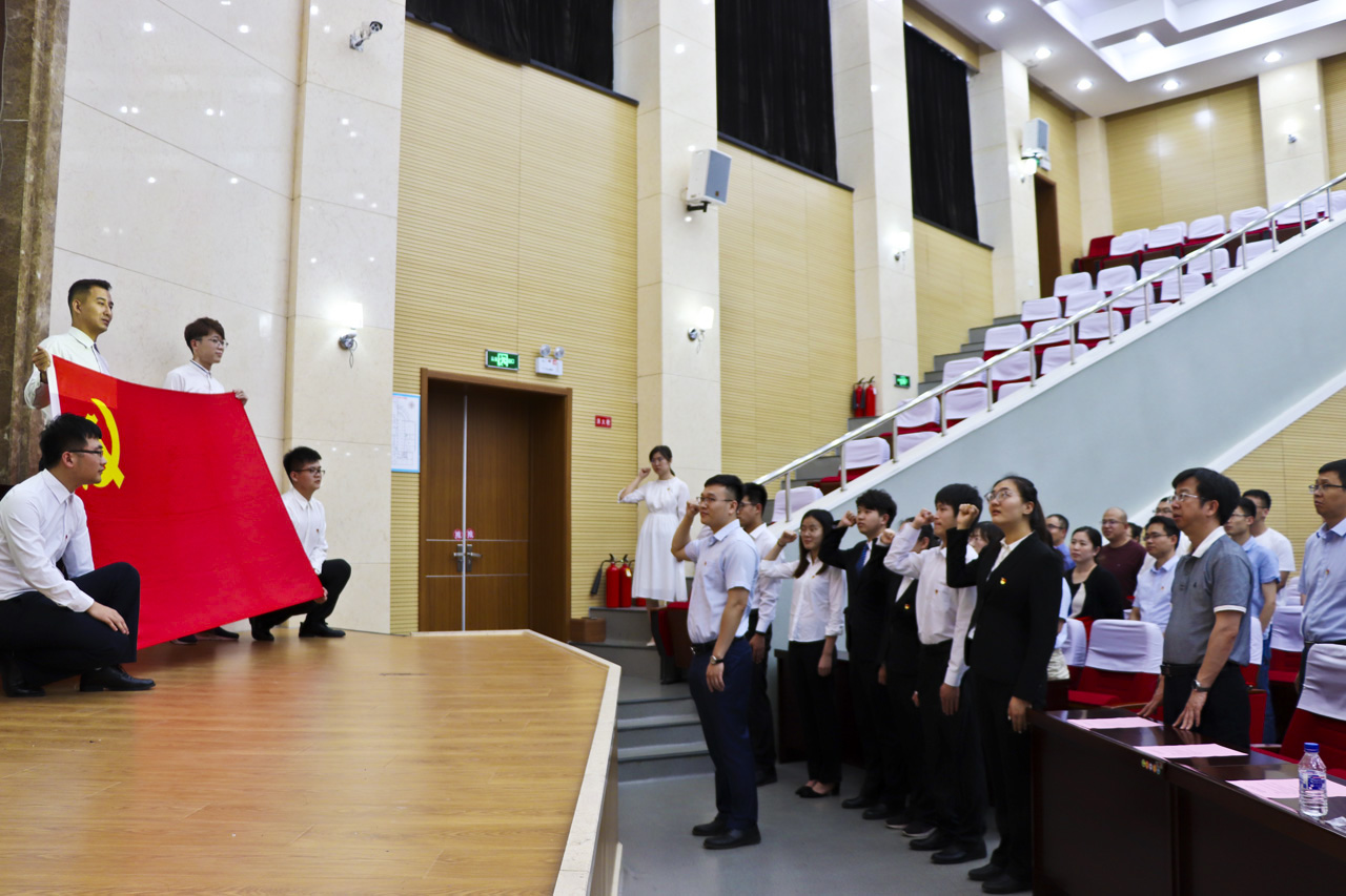 最后,由杨超同志领誓,新党员进行入党宣誓。面向鲜红的党旗,全体新党员举起右拳,庄严宣誓。在座的共产党员也重温了入党誓词,受到了教育。