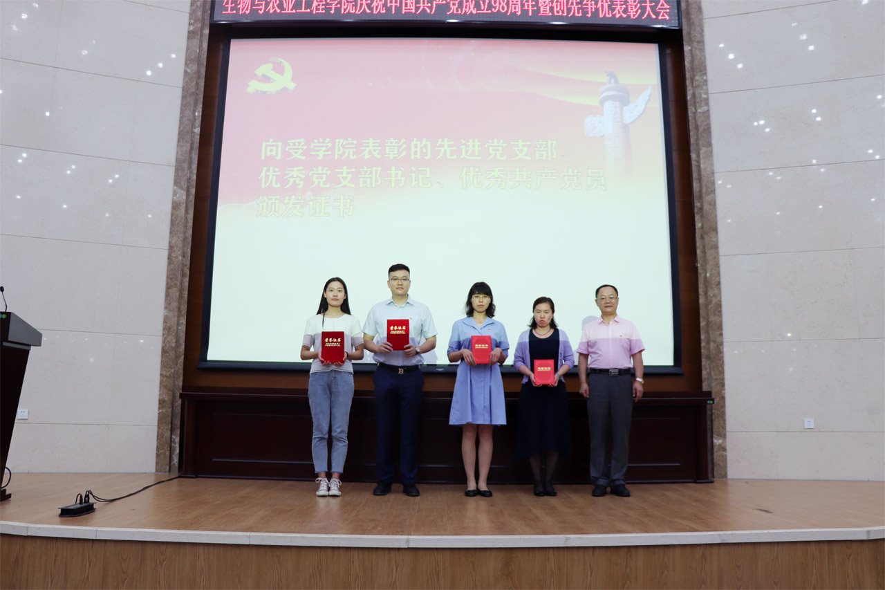 生物与农业工程学院召开庆祝中国共产党成立九十八周年暨创先争优表彰大会