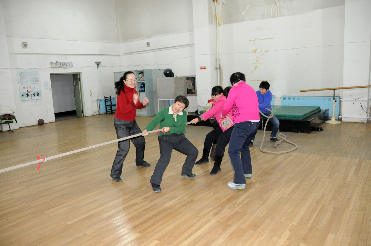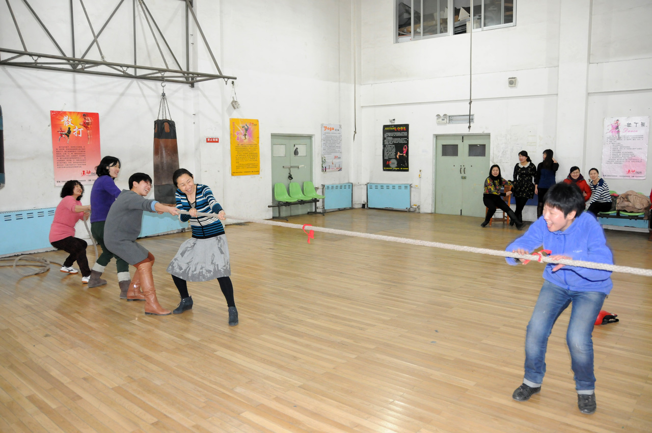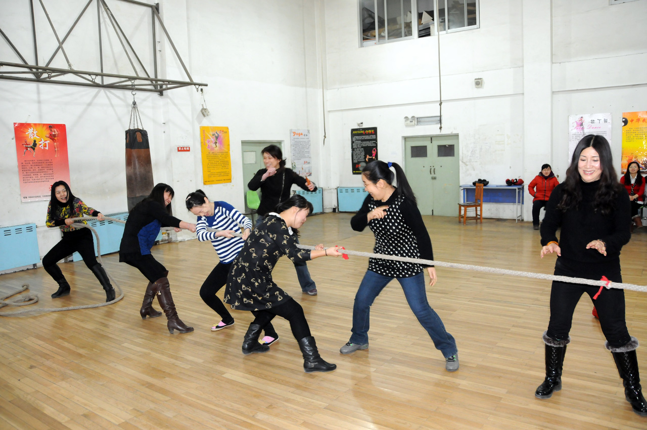 之后,女教师分别进行了个人跳绳、集体拍球接力和拔河比赛,气氛热烈和谐,且团队精神表现得尤其突出。对优胜队和优胜者,学院准备了小奖品。