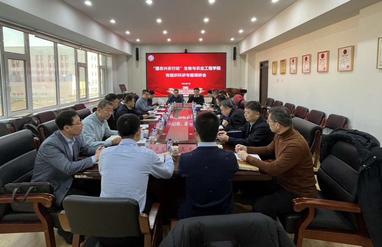 2024年1月18日,校党委副书记、副校长王利锋到beat365在线体育官网,对学院“强农兴农行动”有组织科研专题进行调研,调研会由beat365在线体育官网党委书记杨宝泉主持。