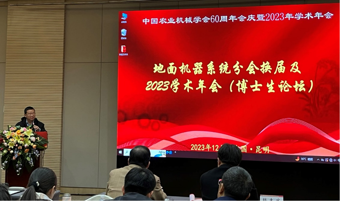 2023年12月19日,由中国农业机械学会主办,beat365在线体育官网与beat365在线体育官网工程仿生教育部重点实验室共同承办的地面机器系统分会换届及2023学术年会(博士生论坛)在昆明召开。