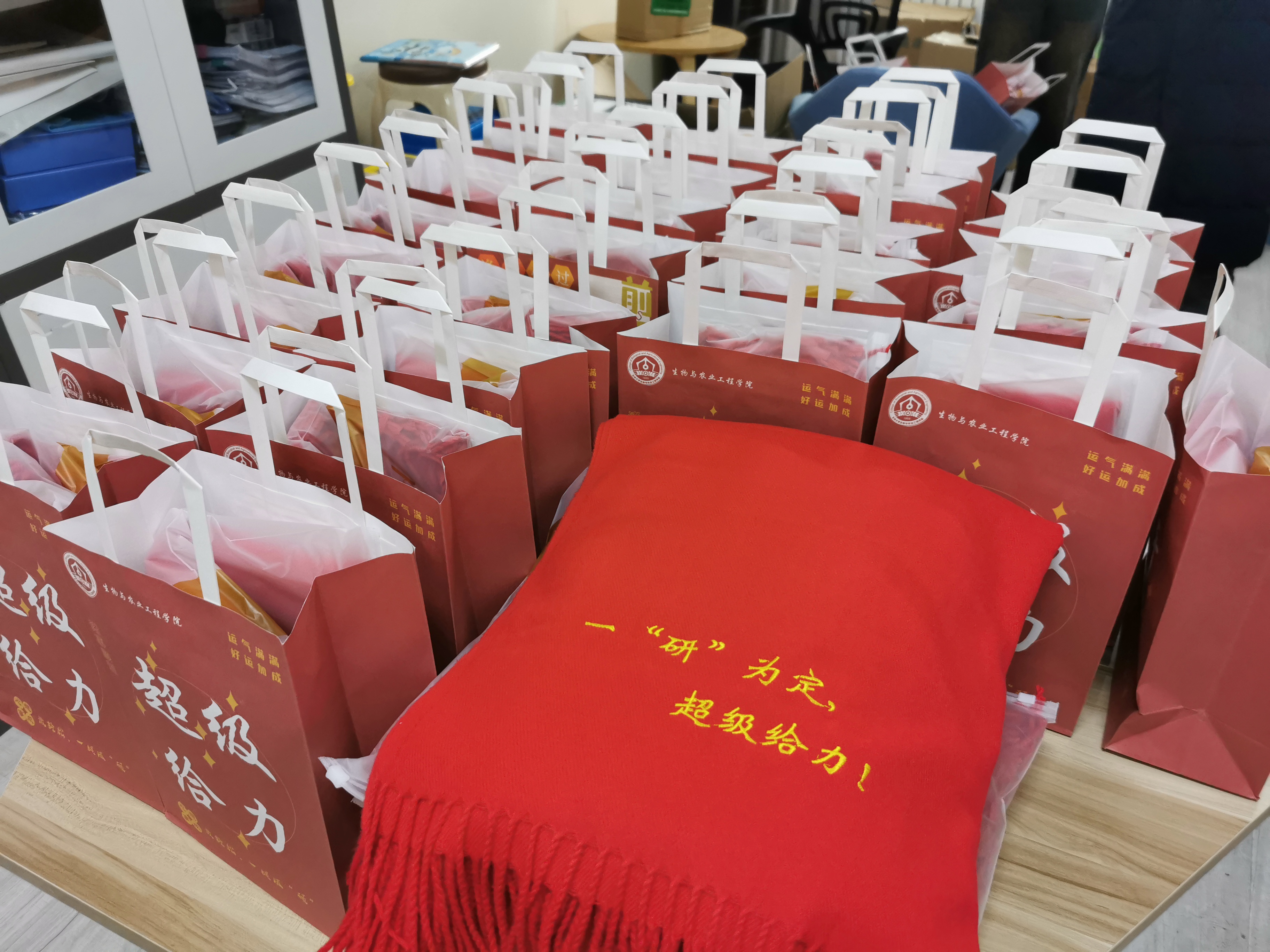 前期,学院学生工作办公室的老师为考研同学们精心准备绣有“一’研’为定,超级给力!”祝福字样的祝福围巾,而后又反复挑选礼袋,并在礼袋上设计带有学院特色的文字,以表鼓励。活动当天由杨超老师为每一位考研同学送出围巾,并叮嘱同学们在考研复习的关键阶段一方面要坚定信心,对待研究生招生考试既要有思想上的重视,又要有取得成功的自信,复习备考要坚持到最后一天,进入考场后也要始终如一地认真做题:另一方面保持稳定的心态,遇到心情不适可以及时跟老师同学沟通,照顾好自己的身体,确保身心健康,这样才能够取得最后的胜利。