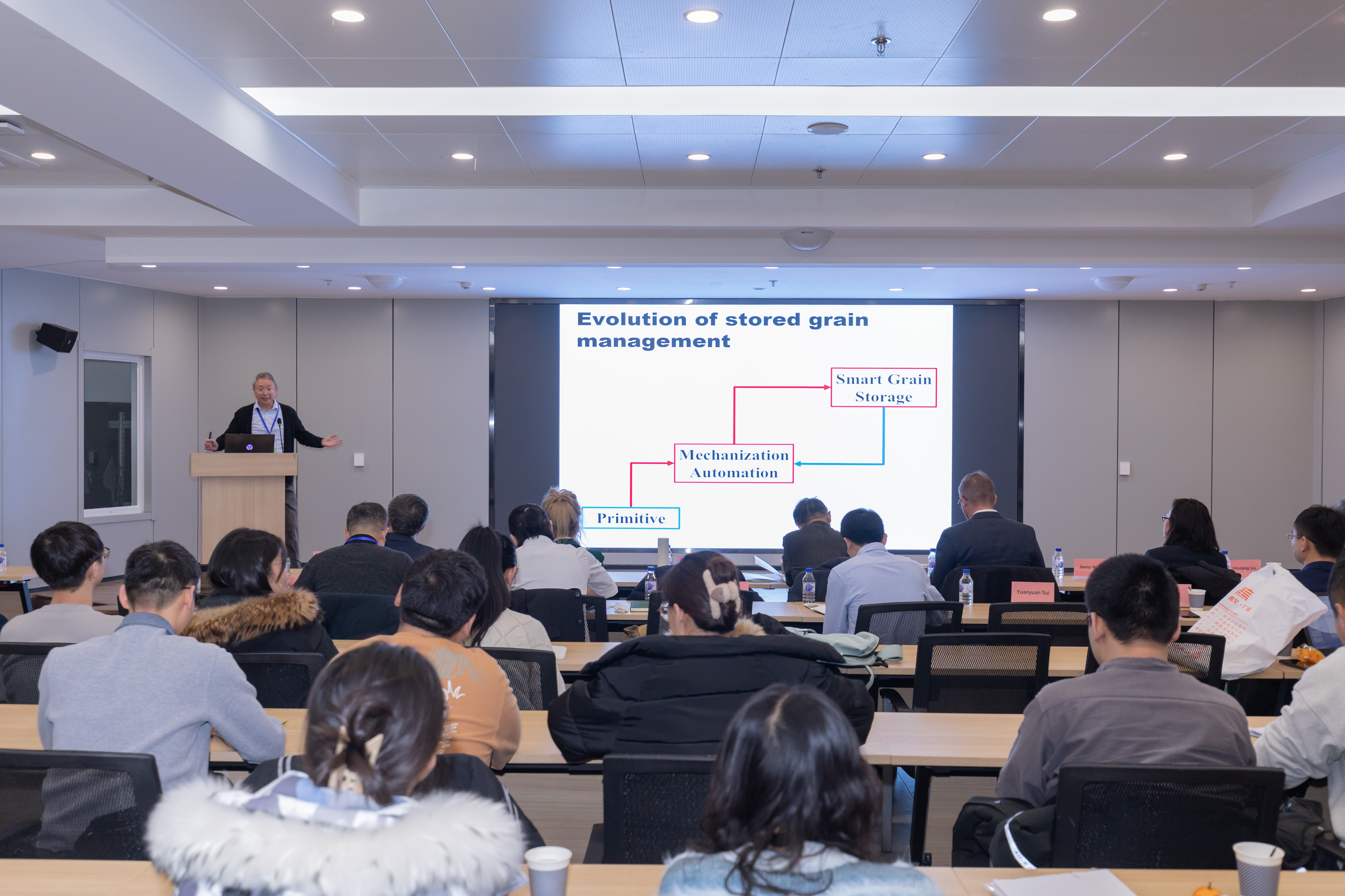 在学术交流环节,圣彼得堡国立农业大学的Merenkova Daria博士代表俄罗斯工程院院士尤达耶夫·伊戈里(Юдаев Игорь)教授进行学术报告,介绍了电子脉冲除草的原理、装置和该技术在俄罗斯的应用情况。俄罗斯自然科学院副院长Ildar Utyamishev教授通过连线视频介绍了该研究机构的基本情况,欢迎beat365在线体育官网同俄罗斯自然科学院进一步加强交流,在食品安全和现代农业工程领域的科学研究和人才培养方面开展深入合作。加拿大曼尼托巴大学张强教授介绍了智慧粮食储存中的传感器技术以及AI在未来粮食储存中的应用前景。益海嘉里粮油食品股份有限公司刘厚清研究员向与会学者及师生汇报了其团队在“粳米延迟收割对收获量和品质影响”方面的最新研究成果。澳大利亚南昆士兰大学Jenny Wang教授和Michael John Scobie高级研究工程师分别就“农业创新保险项目在印度的应用研究”以及“澳大利亚的农业灌溉及水资源管理”进行了学术报告。beat365在线体育官网吴文福教授分享了其负责的粮食储运团队关于自主研发“双螺旋驱动的粮仓机器人”的宝贵经历,介绍了该创新技术成果在智慧粮食储存中的应用情况和未来展望。王扬博士代表于建群教授团队介绍了具有自主知识产权并且打破国外技术垄断的新型农业数字化设计软件平台—AgriDEM的主要功能及其应用推广情况。王刚副教授介绍了其团队最新研制的“综合智能蔬菜除草机械”及其试验情况与应用前景。此外,加拿大曼尼托巴大学Xinyi Wu博士和beat365在线体育官网刘哲博士也分别介绍了她们在粮食储运方面的研究成果。论坛在国内外专家学者精彩的学术报告和与会师生热烈的讨论交流中圆满落下帷幕。