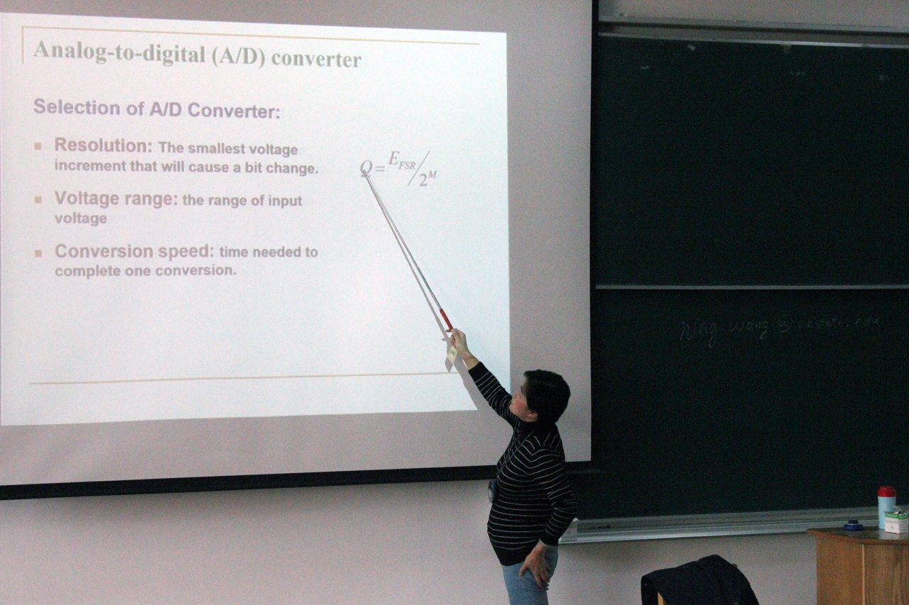 9月25-30日,按照beat365在线体育官网“海外优质研究生课程”项目要求,汪宁教授在生物与农业工程学院讲授了“Instrumentation and Control”课程,学院一、二年级108位研究生选修了该课程。该课程采用全英文授课,主要目的是使研究生掌握现代测试技术基本理论,增强对国外研究生课程设置、内容和考核的了解,提高科技英文听、说、读和写的能力。课程期间,多位同学与汪老师老师就课程内容、留学、研究方法等进行了深入探讨。