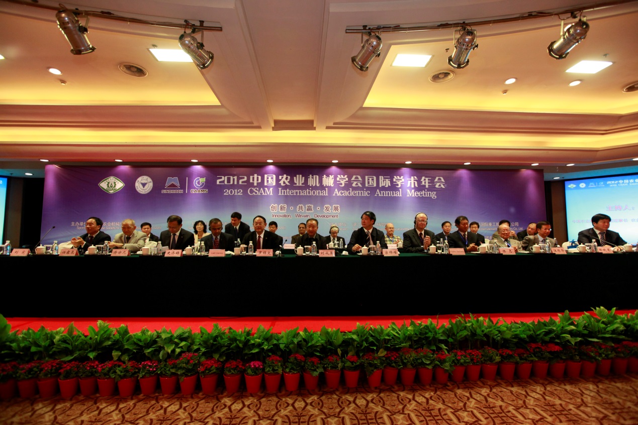 2012年10月27日~30日在浙江省杭州市召开了“2012中国农业机械学会国际学术年会”。 本次学术年会的主题为“创新•共赢•发展”。大会以特邀学术报告和专题分会场形式进行学术交流。大会设有14个专题分会场,包括1个国际分会场、13个国内分会场。会议期间隆重表彰了“第三届中国农业机械学会青年科技奖”获奖者。参会人员近700人,是近年来规模最大的一次学术年会。