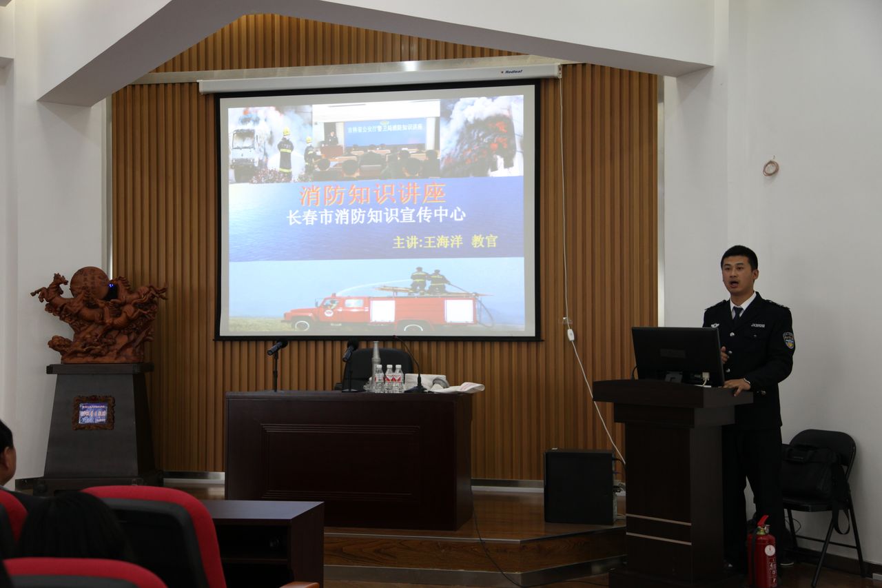 消防知识讲座由长春市东方金盾消防知识宣传中心王海洋教官主讲,内容主要涉及消防法规简介、基本消防知识、火场自救逃生方法、火灾逃生需注意的安全事项等内容。期间,王海洋教官结合国内和省内发生的实际案例,介绍了火灾自救、单位及家庭电器、燃气设备安全使用、火情紧急处置、汽车自燃灭火和逃生方法等,详细说明了火灾应急疏散常识并在现场演示了灭火器材的使用要领,让大家对消防知识有了更直观的了解,与会人员均感受益匪浅。